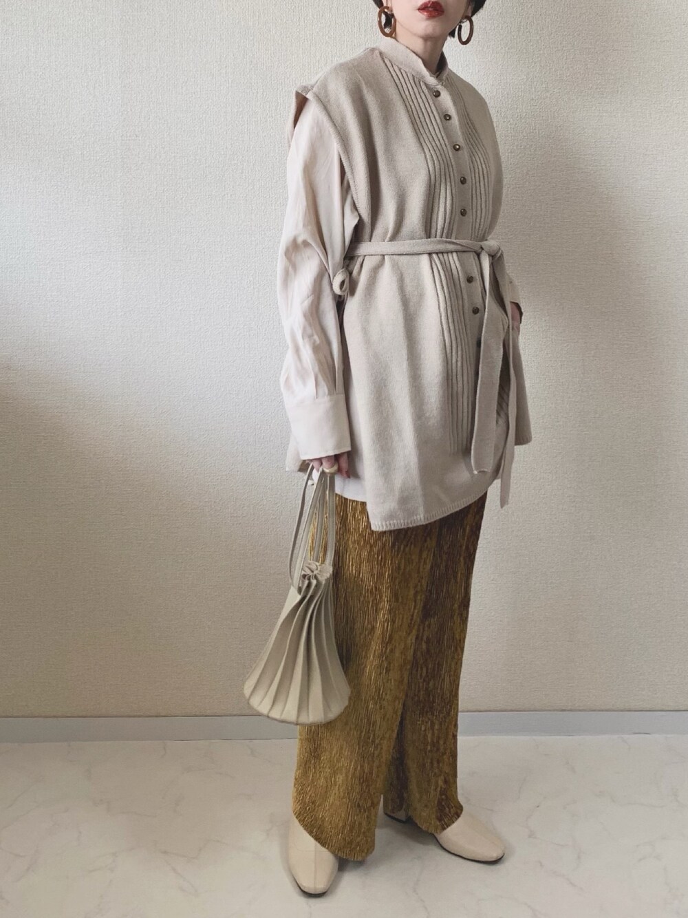 ニットベストコーデにオススメな BDRのリンクルパンツ タイムセールでお買い得になってます🤗💓