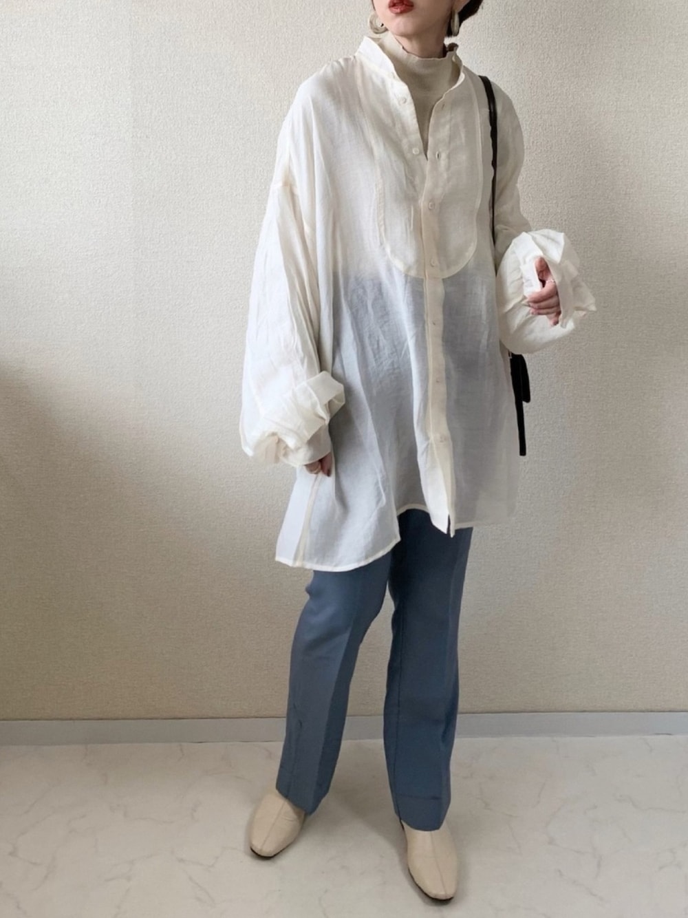MISATO のシャツ/ブラウス「シアーバルーンスリーブビッグシャツ/オーバーシャツ/バルーン袖」を使ったコーディネート