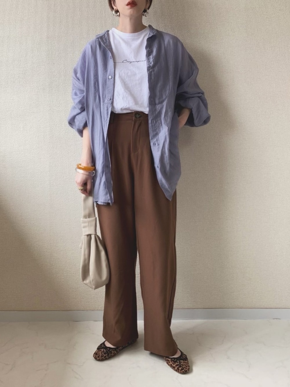 華奢なロゴデザインがかわいいdholicさんのTシャツ♡ スラックス合わせはカジュアルになりすぎないので大人っぽく着れます!