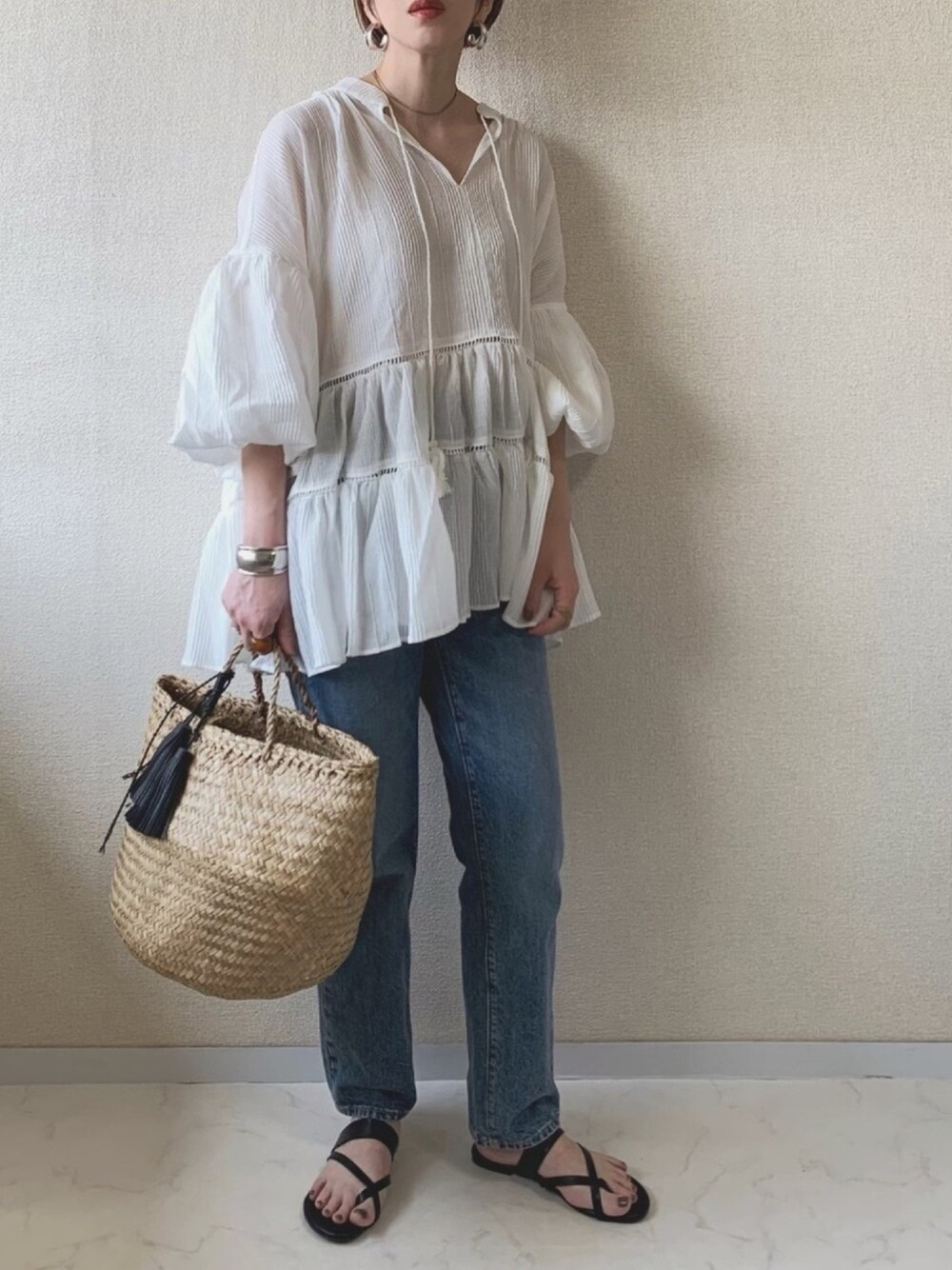 MISATO のチュニック「ボリューム袖ティアードチュニック」を使ったコーディネート