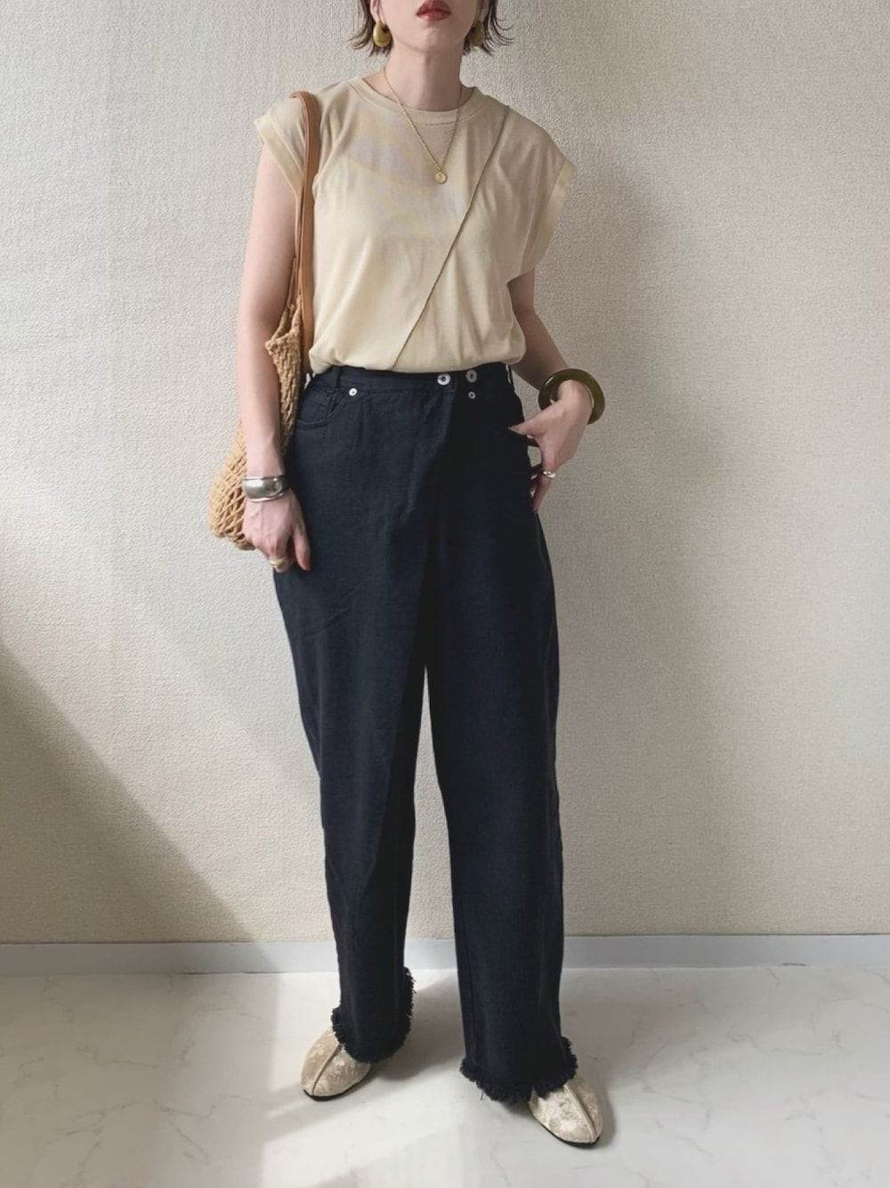 ラップデザインが可愛すぎるデニム♡ トップスはシンプルにしました!
