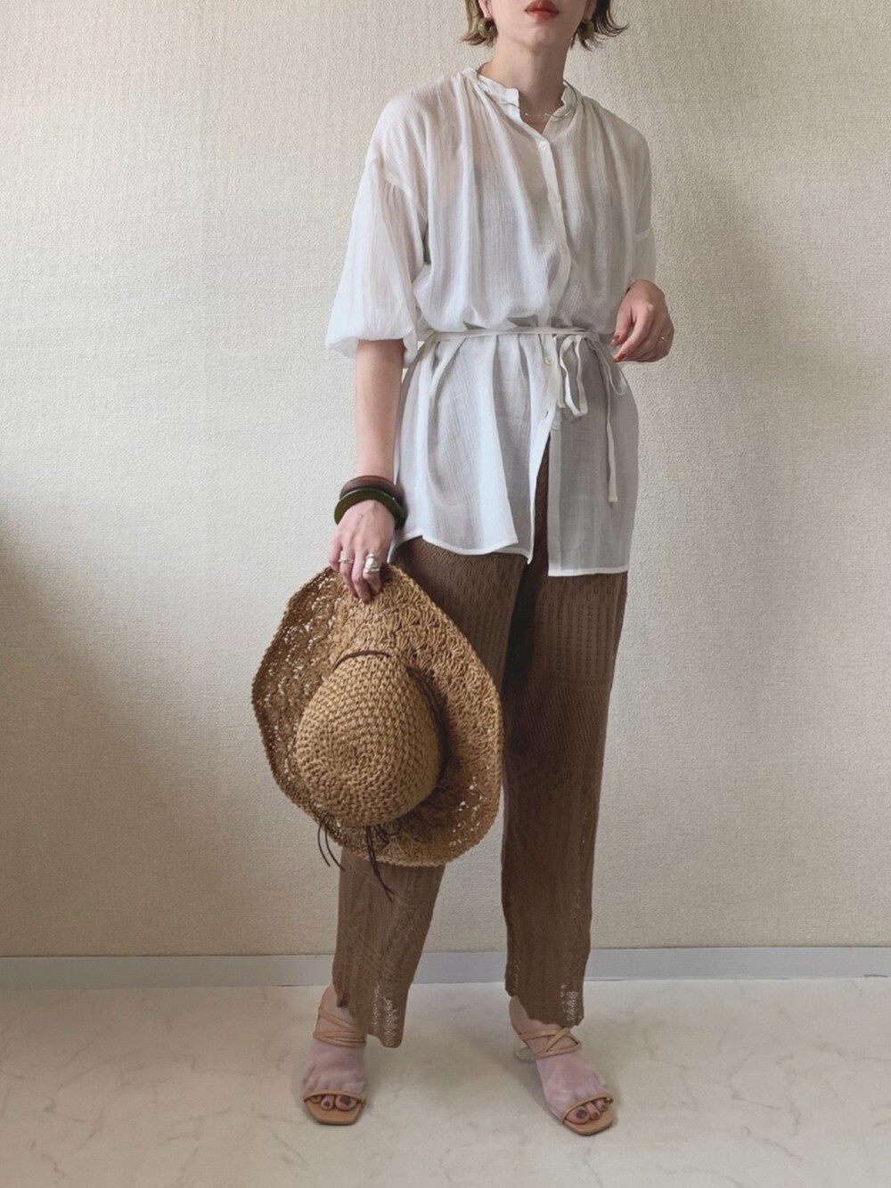 サラッと着れる楊柳チュニック♡ 透かし編みのパンツと合わせた夏コーデ🌴