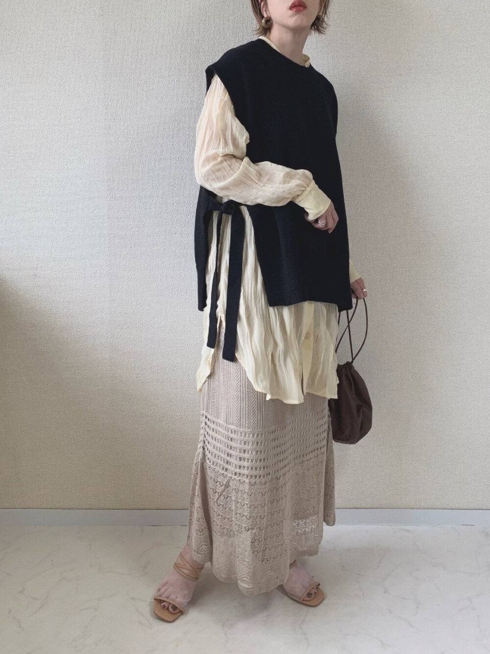 INTER FACTORY×Misato バンドカラーリンクルシアーロングシャツ こちらはベージュのお色🤎 秋冬はベストやニットと合わせて着て頂いてもかわいいです☺️💓