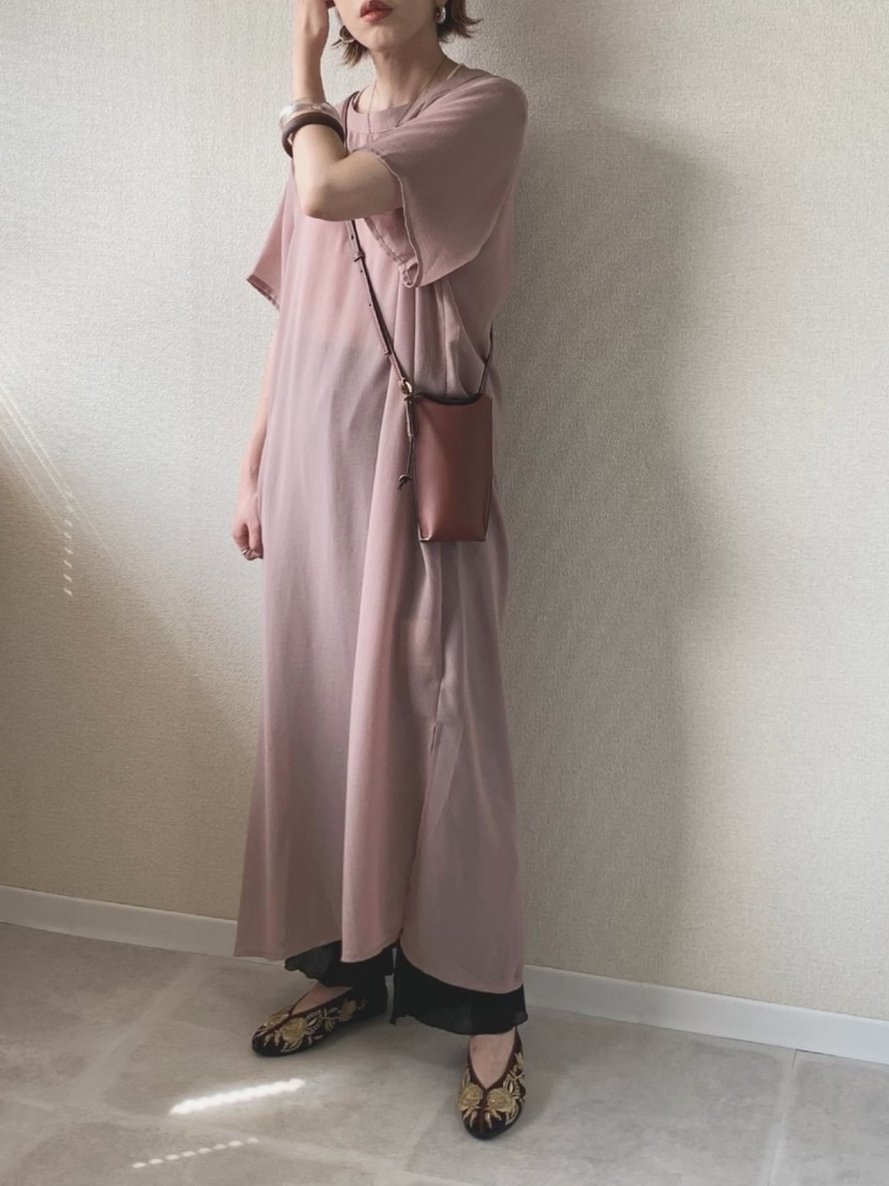 MISATO のワンピース「【ファッションインフルエンサーmisato×VACANCY】バックスリットカフタンシアーワンピース」を使ったコーディネート