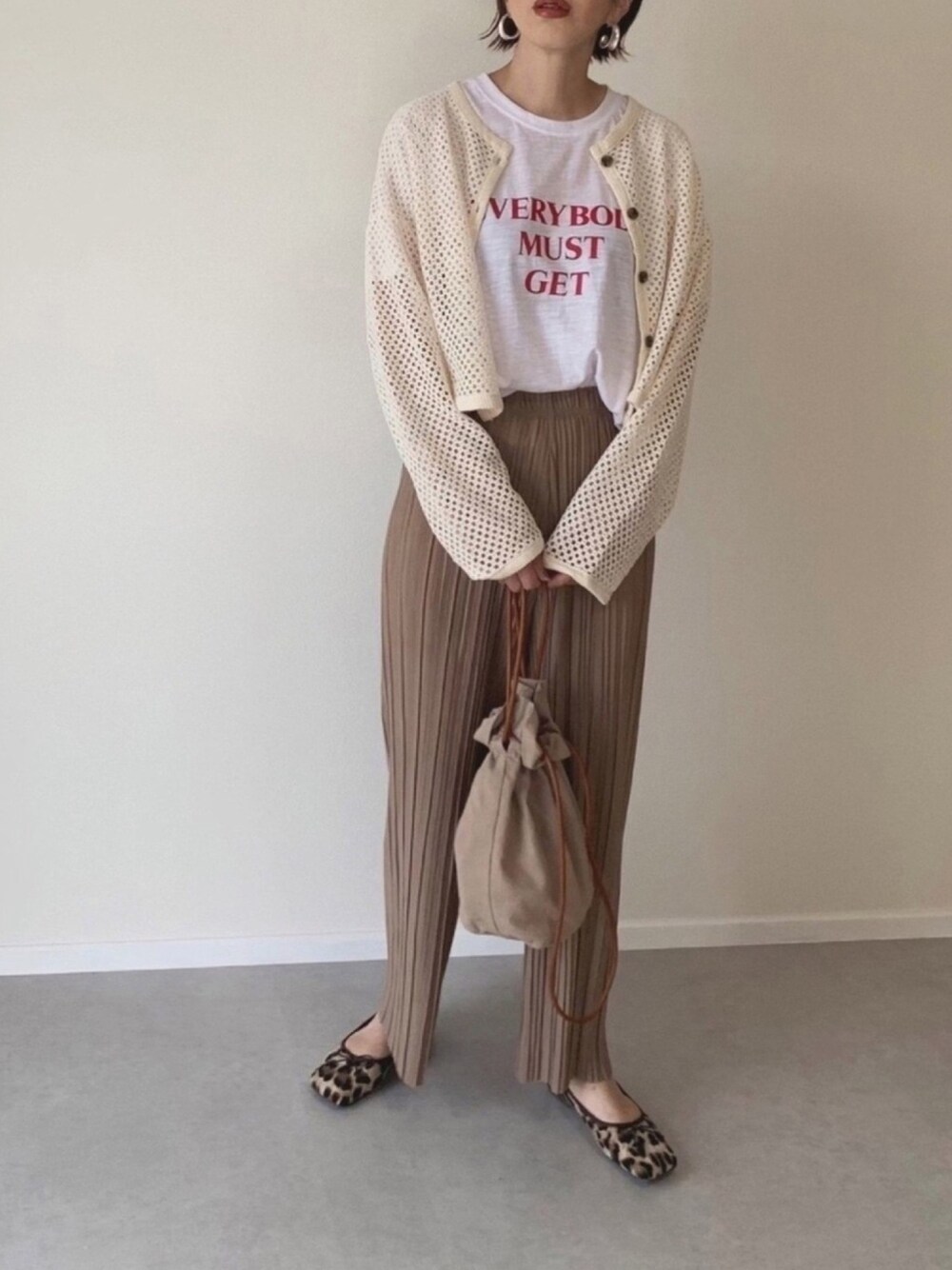 MISATO のカーディガン/ボレロ「パンチングニットカーディガン」を使ったコーディネート