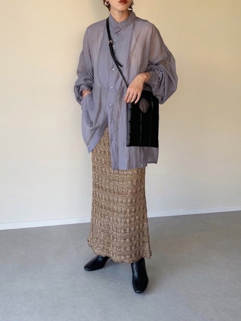 MISATO のシャツ/ブラウス「シアーバルーンスリーブビッグシャツ/オーバーシャツ/バルーン袖」を使ったコーディネート