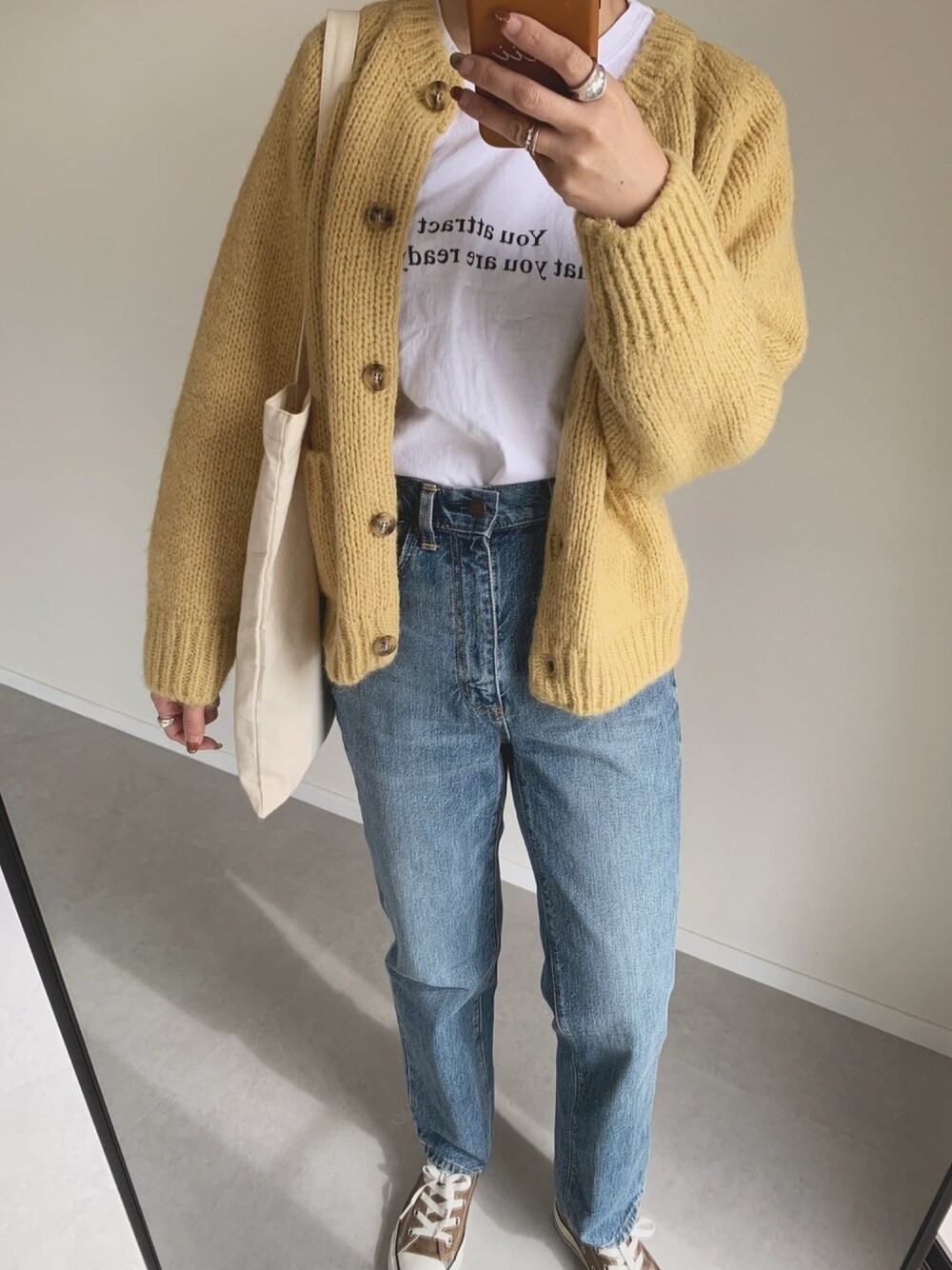 色味がドストライクだったカーディガン💛 久しぶりにデニムでカジュアルスタイル👖
