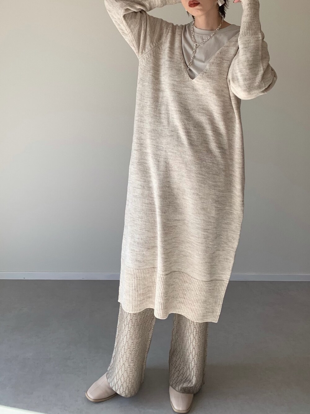 レイヤードが楽しめる Vネックニットワンピース 今年っぽくジャガードニットと合わせると かわいい☺️🧡