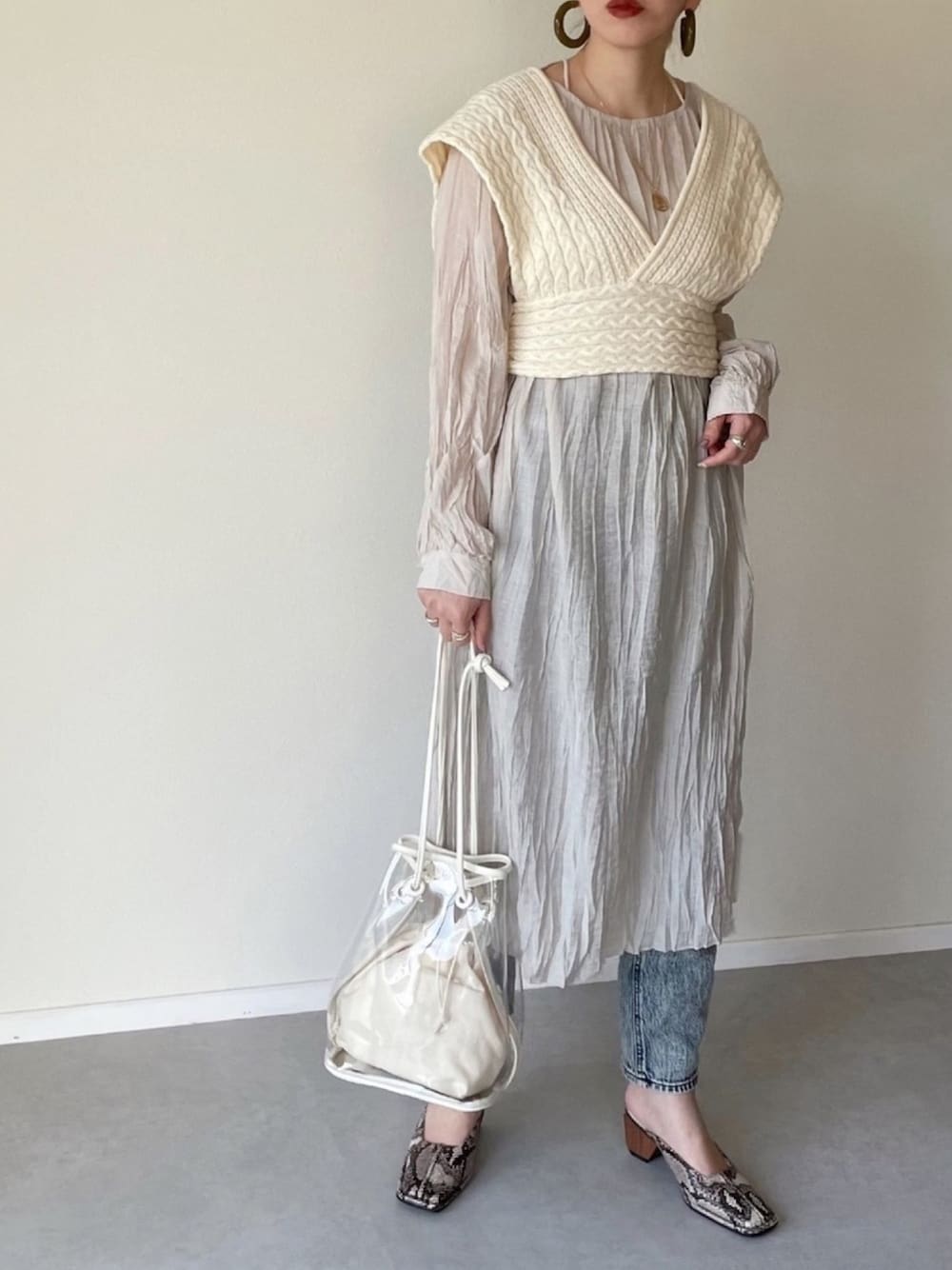 MISATO のワンピース「シアークリンクルプルオーバーワンピース」を使ったコーディネート