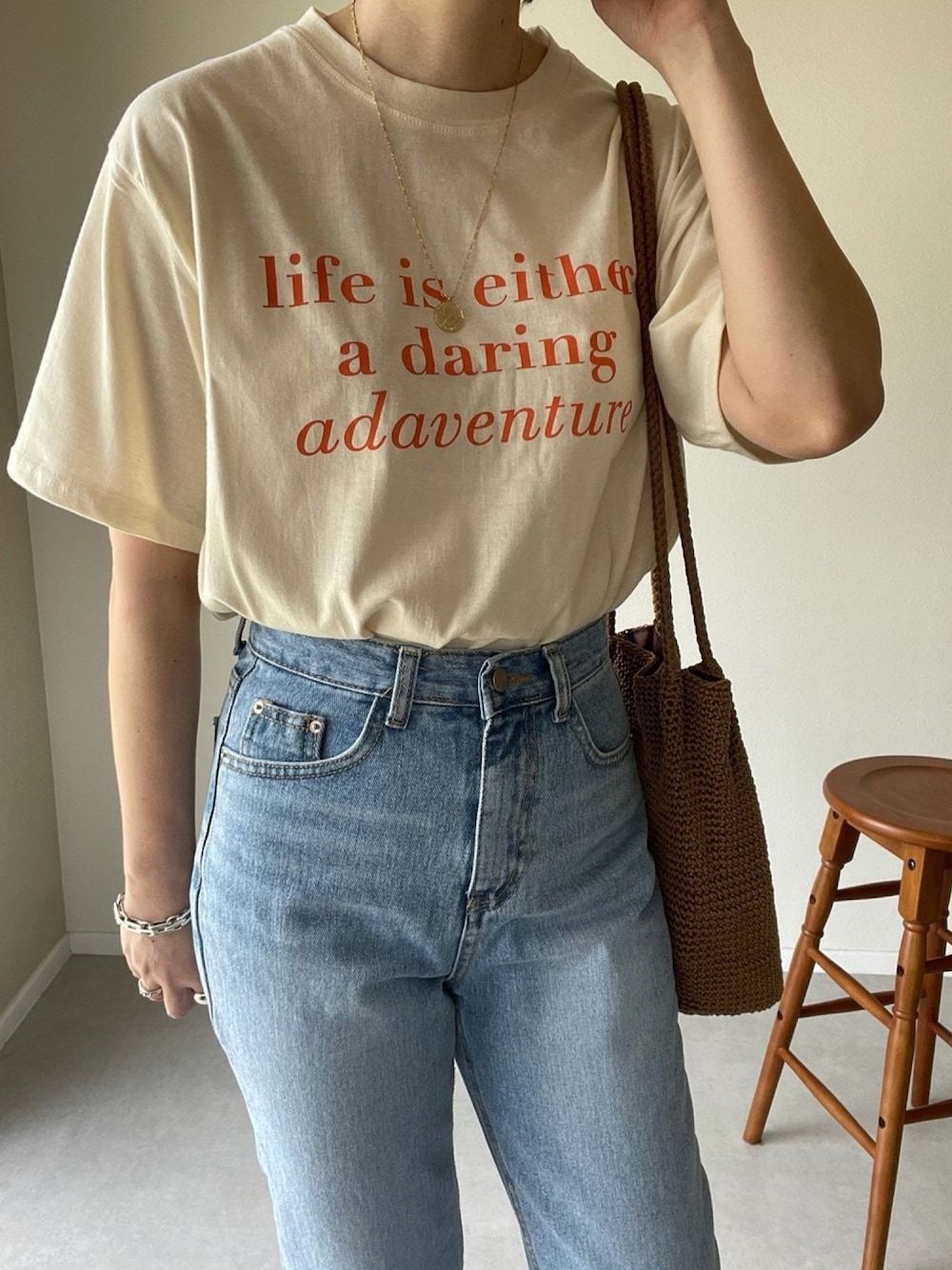 シンプルにTシャツ×デニムのカジュアルコーデ♡ dholicの半袖ロゴTは毎年チェックするくらい かわいくてお気に入りです☺️💓