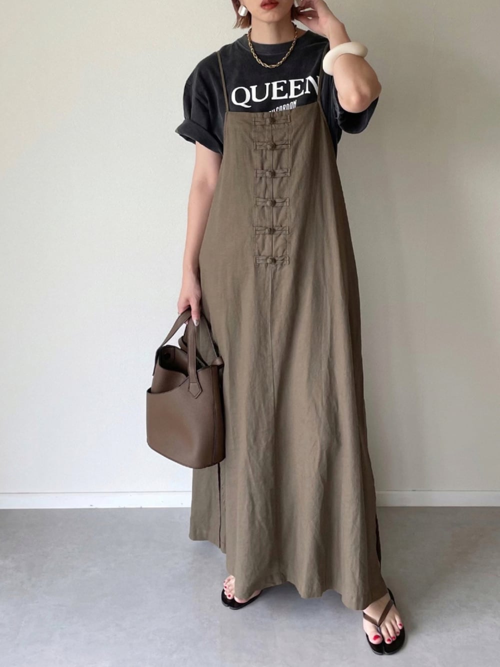 MISATO のワンピース「チャイナボタンキャミワンピース」を使ったコーディネート