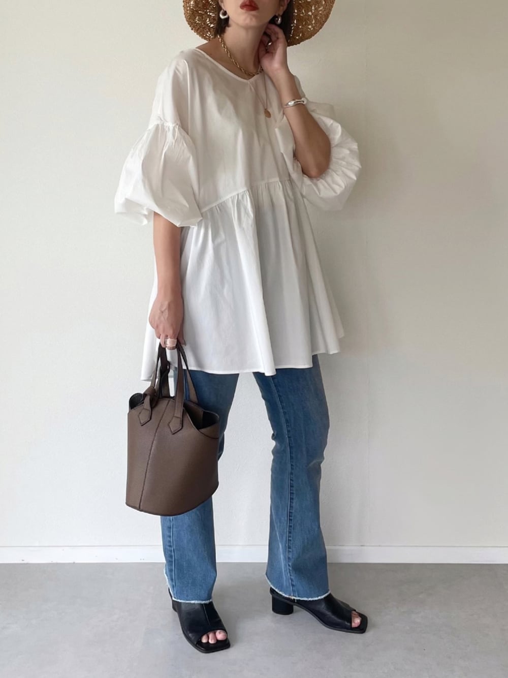 MISATO のシャツ/ブラウス「前後2WAYボリュームスリーブブラウス」を使ったコーディネート