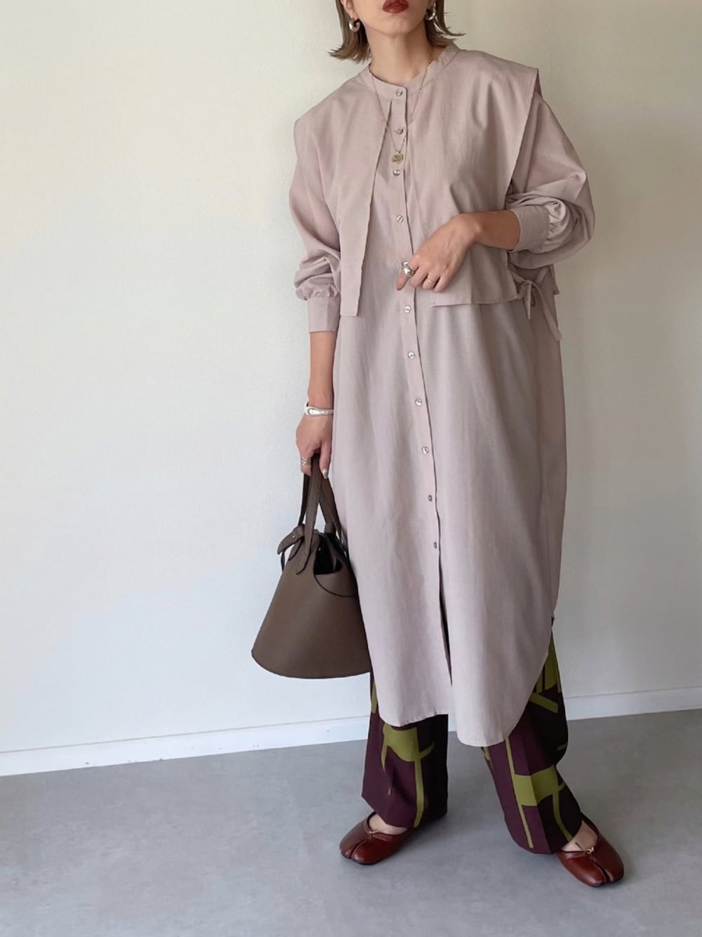 MISATO のワンピース「サイドリボンケープカラーシャツワンピース」を使ったコーディネート