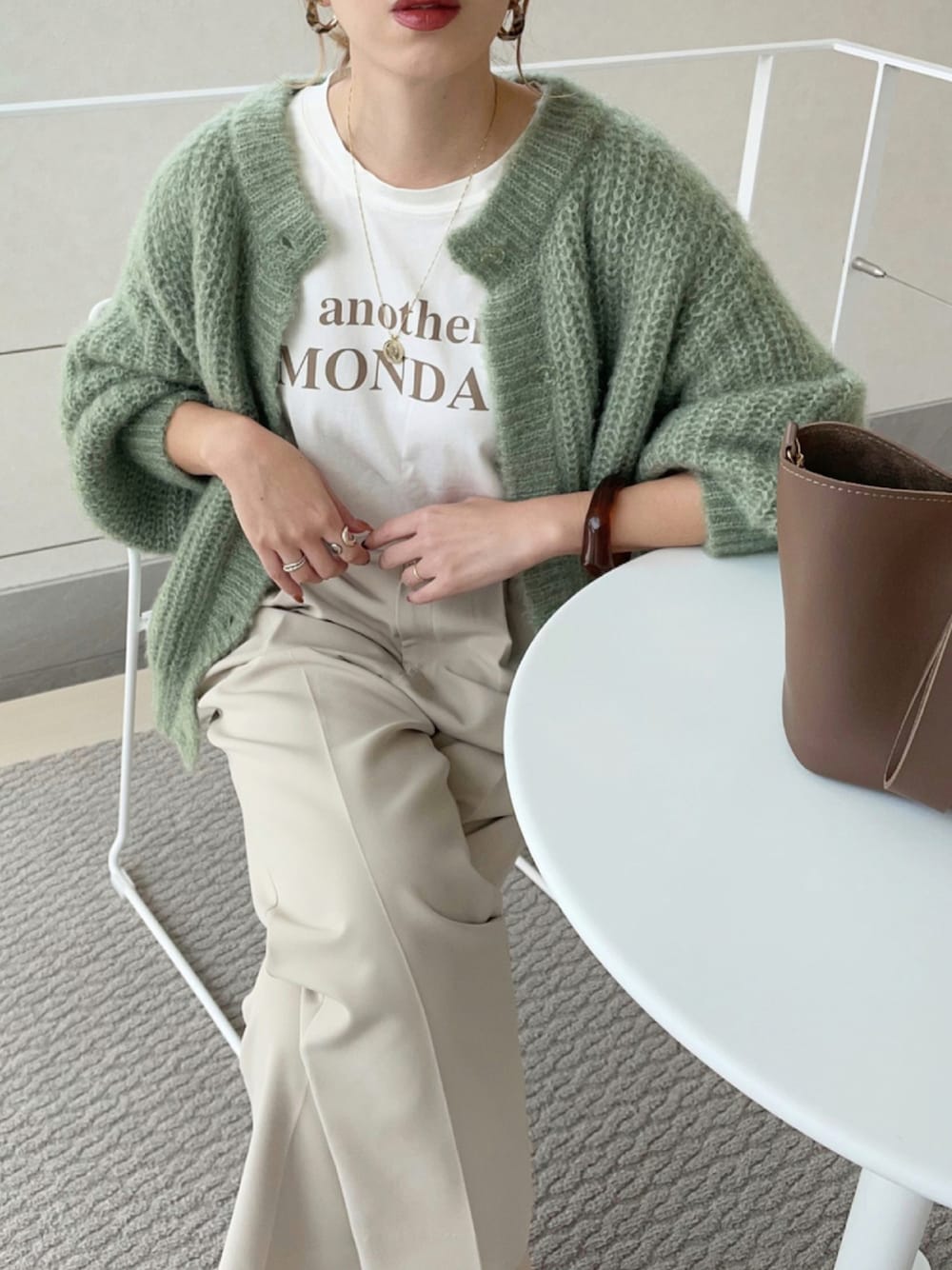 MISATO のカーディガン/ボレロ「クリア釦ふわモコカラーカーディガン」を使ったコーディネート