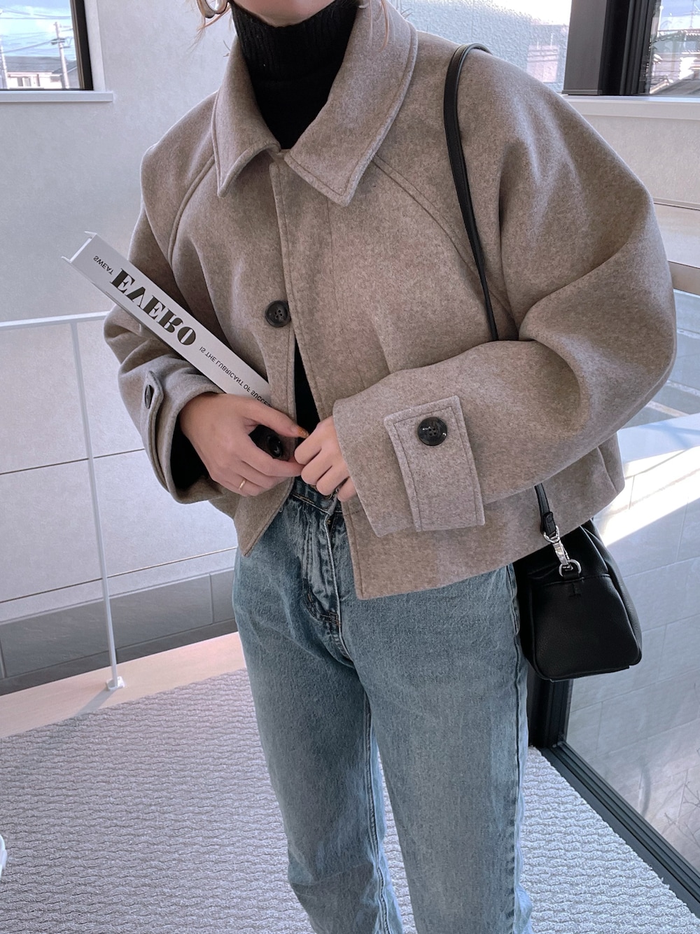 MISATO のその他アウター「フェイクウールステンカラーショートジャケット」を使ったコーディネート