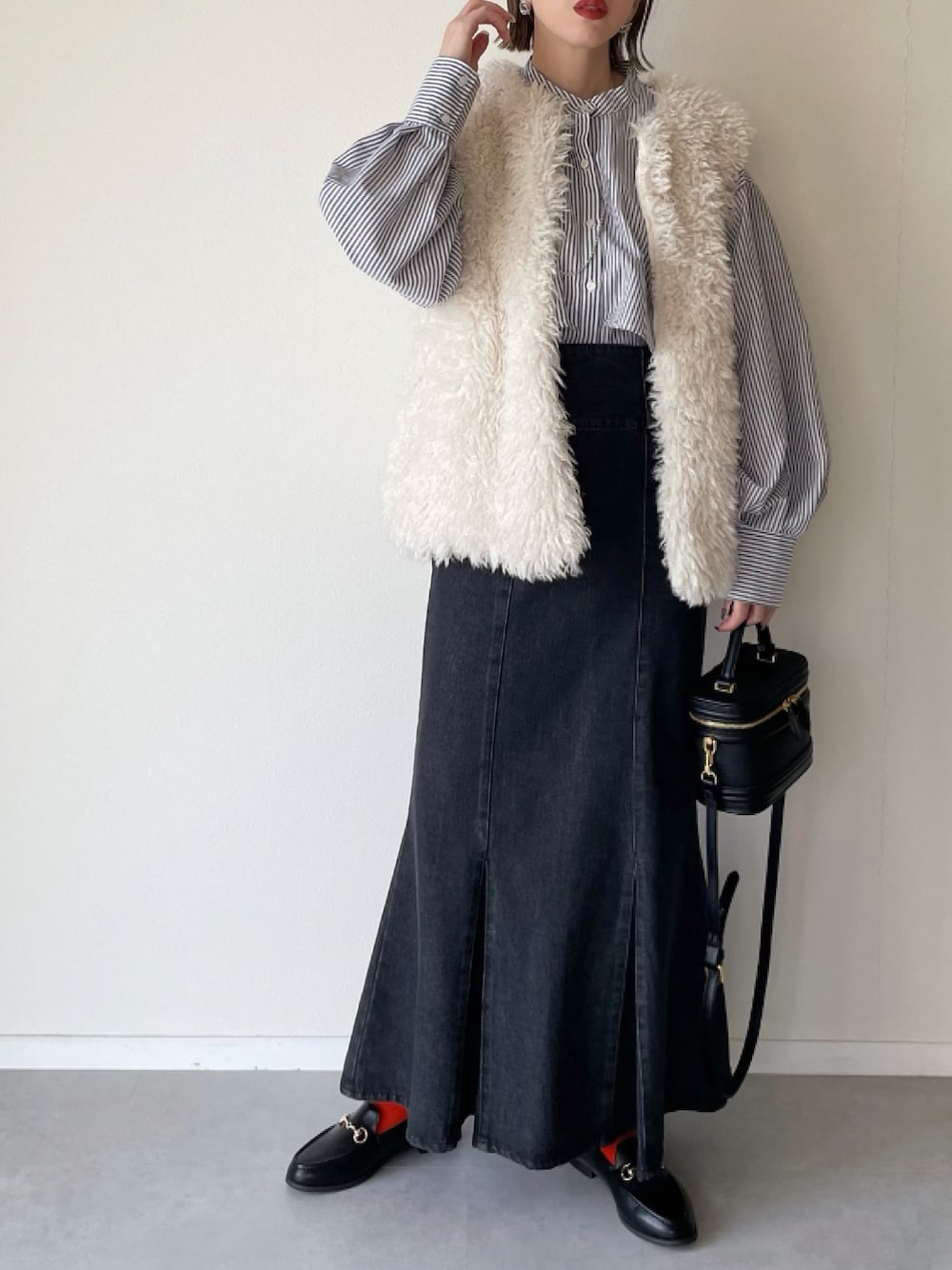 まだまだ寒いですが、 ストライプシャツを使った春先取りコーデ🌷 ボリュームあるシルエットですが、 インスタイルですっきりと♡
