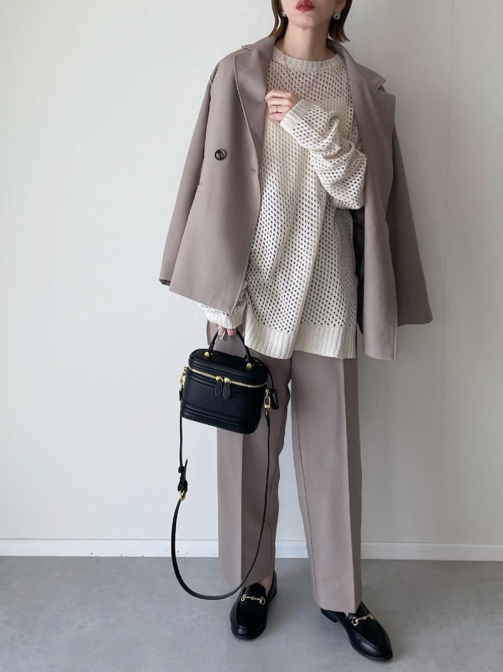 大人っぽくセットアップスタイル♪♪ グレイッシュベージュの色合いも絶妙でオシャレ✨✨ 春はTシャツと合わせてカジュアルダウンして着たい! ✅本日ZOZOクーポン出てます!