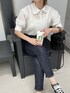 MISATO のシャツ/ブラウス「【SHOPLIST限定】ストライプレースパフスリーブブラウス」を使ったコーディネート
