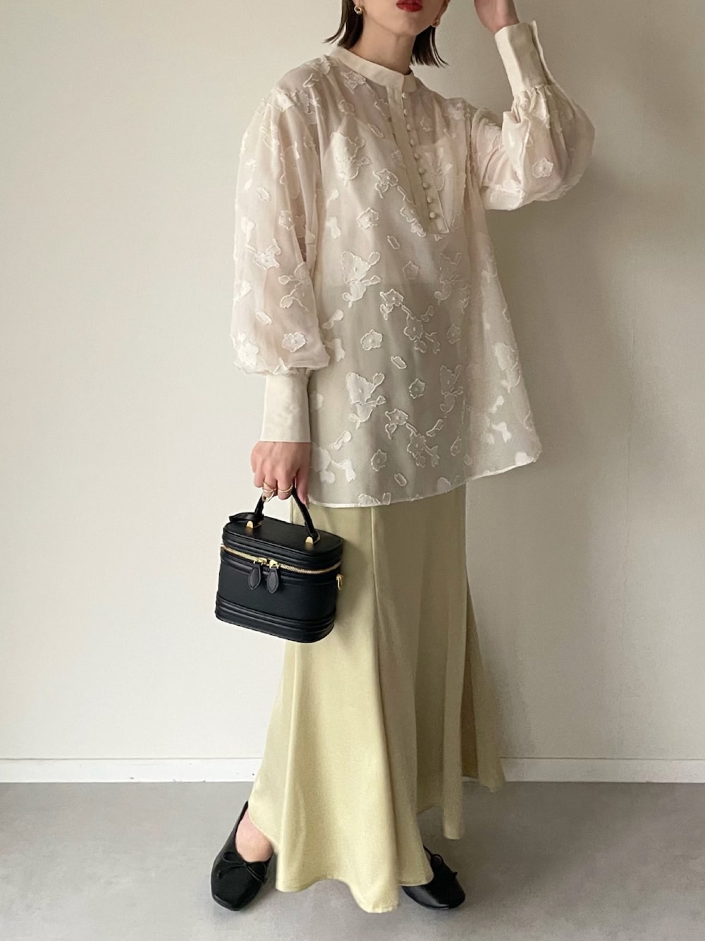 MISATO のシャツ/ブラウス「sheer flower blouse/シアーフラワーブラウス」を使ったコーディネート