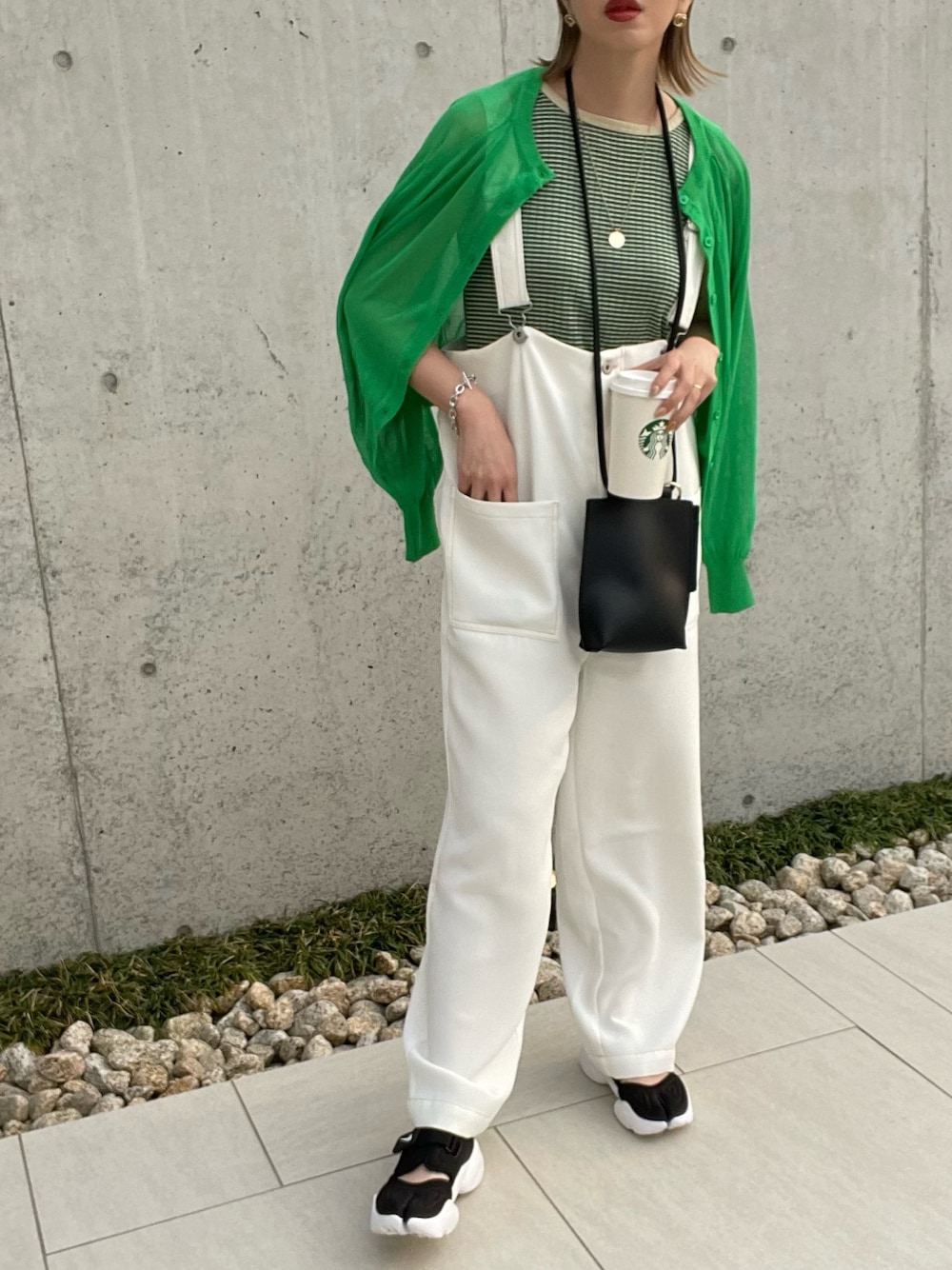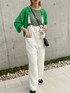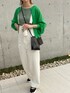 Greenコーデ🍏 カラーコーデの中で1番好きなグリーン💚 オフコーデに合わせるのがお気に入りのスタイリング◎
