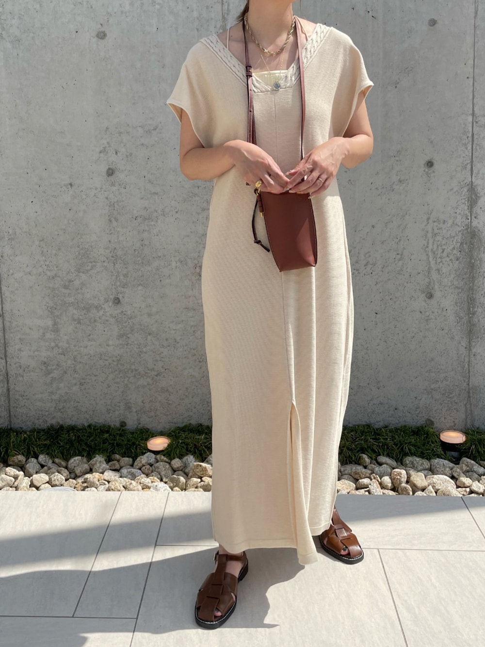 MISATO のワンピース「2022 SS ケーブル編みニット2WAYワンピース」を使ったコーディネート