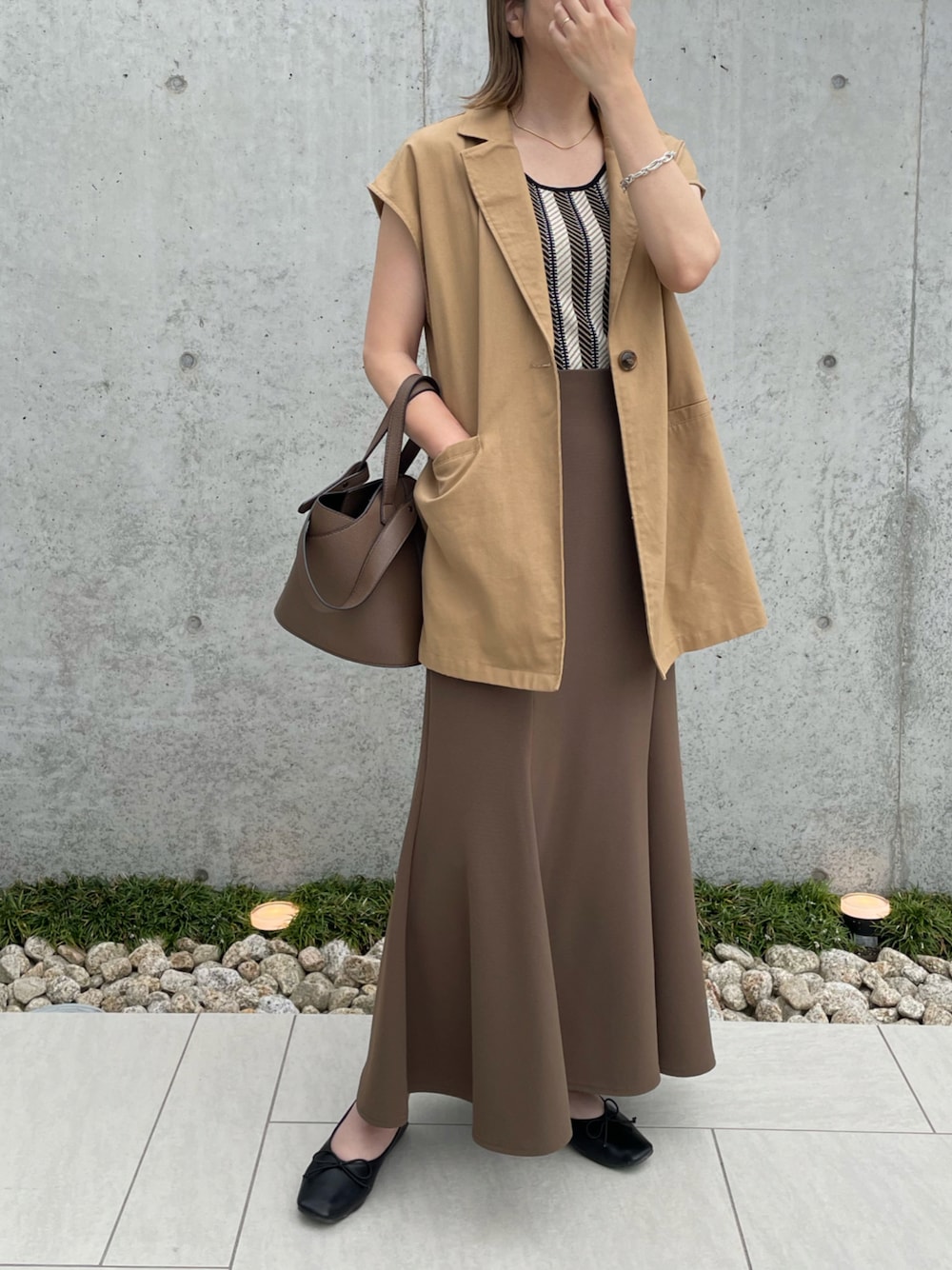 MISATO のベスト「リネンライクテーラードベスト」を使ったコーディネート