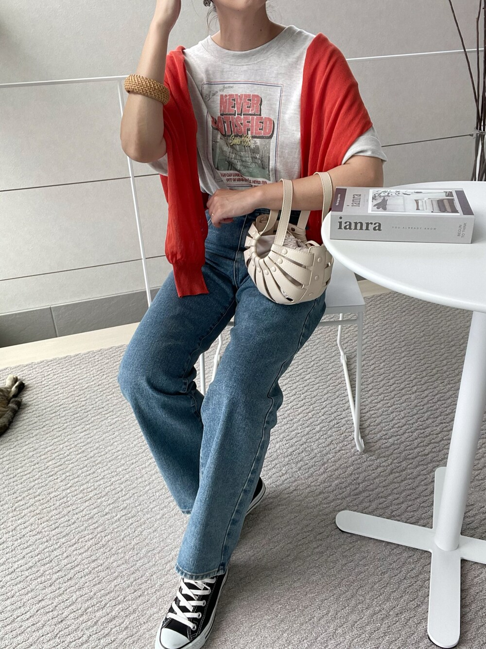 ヴィンテージっぽいプリントが かわいいTシャツ♡ カジュアル王道のデニム合わせ👖