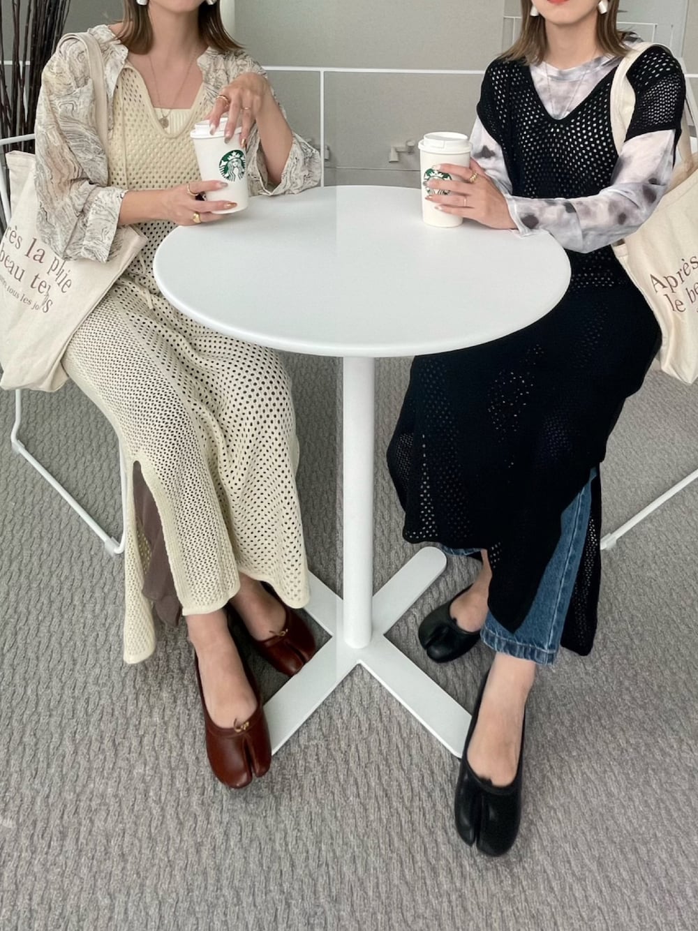 色違いcode🤍🖤 ym by misatoの バックリボンメッシュロングトップスを着まわし♡ リボンは後ろで結ぶのもかわいいけど 前で開けるとVネックワンピに🫶 2wayで着られるところも おすすめポイント🫰🏼💕 ZOZOTOWNで発売中ですっ🧸