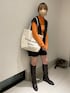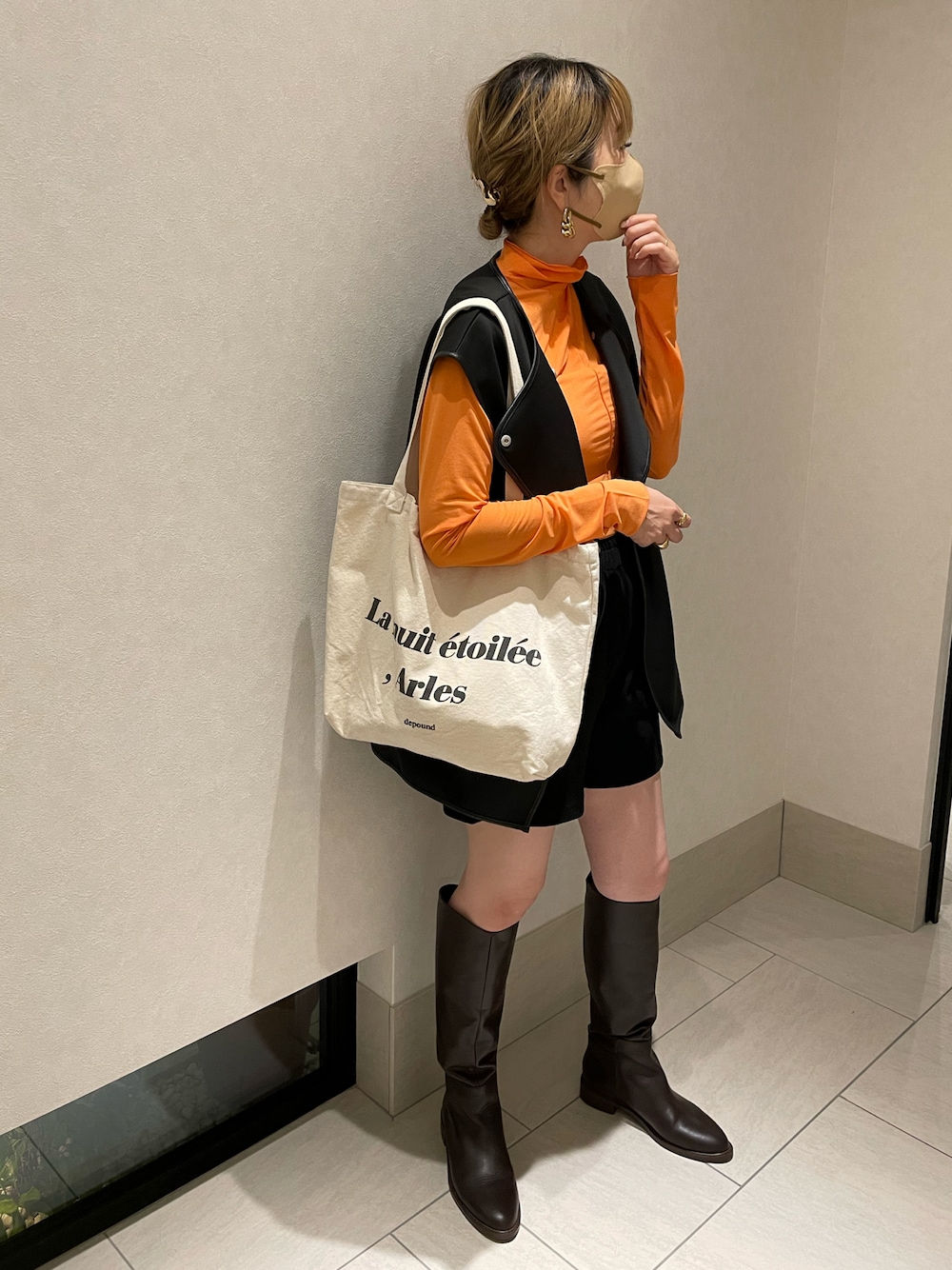 パキッとカラーのシアートップスに ベストを合わせた秋のレイヤードスタイル🍂 秋冬に履きたいロングブーツには やっぱりショーパン合わせがかわいい🫶