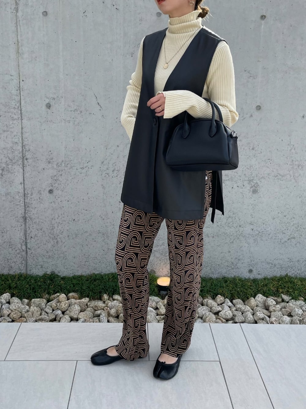 MISATO のベスト「上級者魅え。切替えフェイクレザージレベスト」を使ったコーディネート