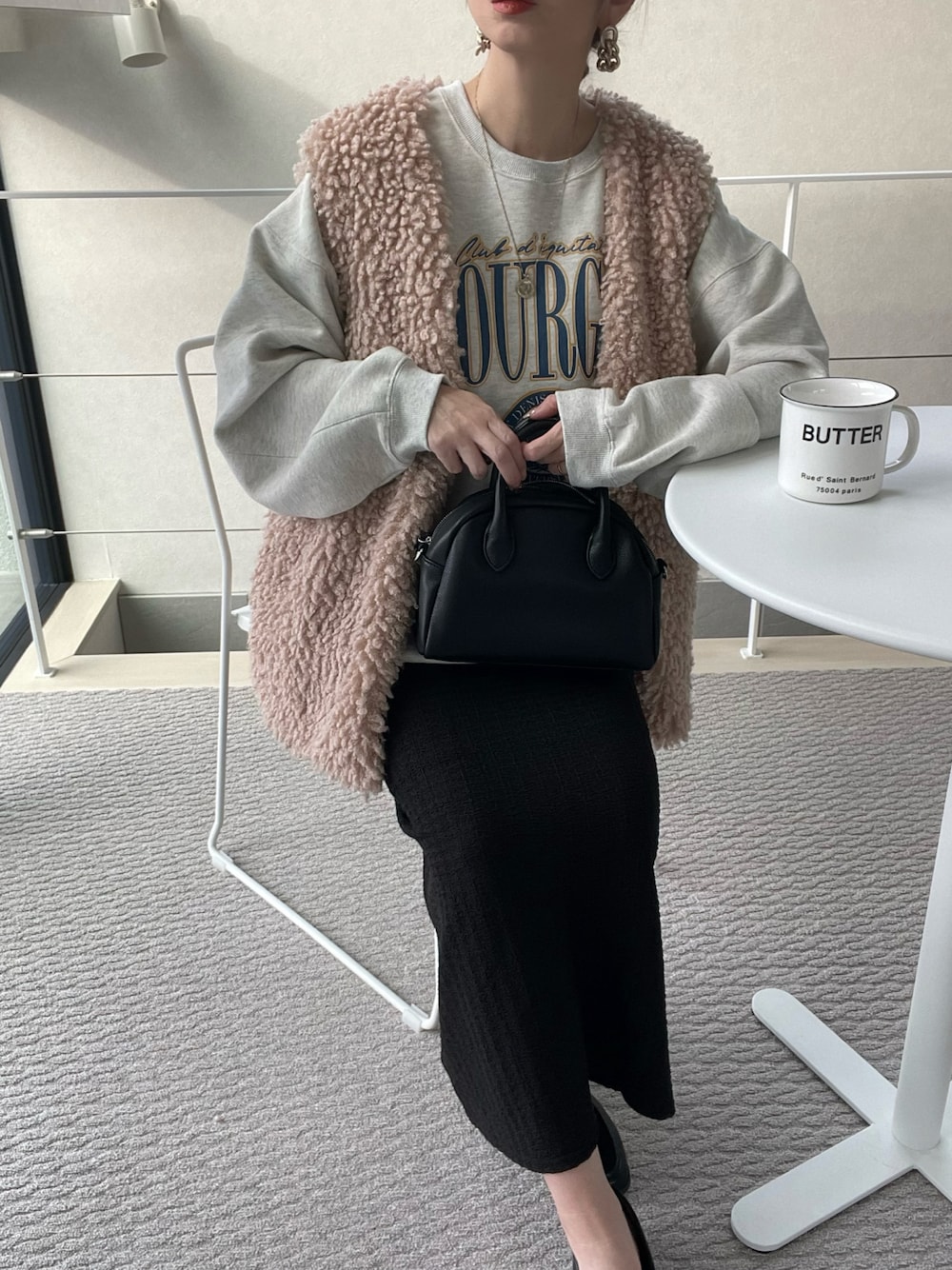 MISATO のベスト「パッと目を惹くコーデの主役。ボリュームプードルフェイクファーベスト」を使ったコーディネート