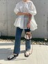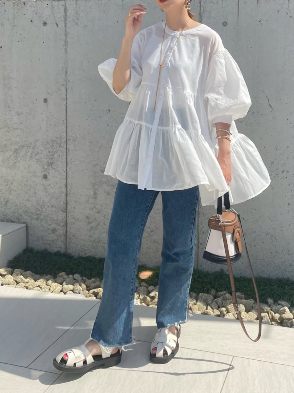MISATO のシャツ/ブラウス「夏に大活躍!ふわり、風をまとう。3wayバルーンスリーブティアードシアーシャツ」を使ったコーディネート