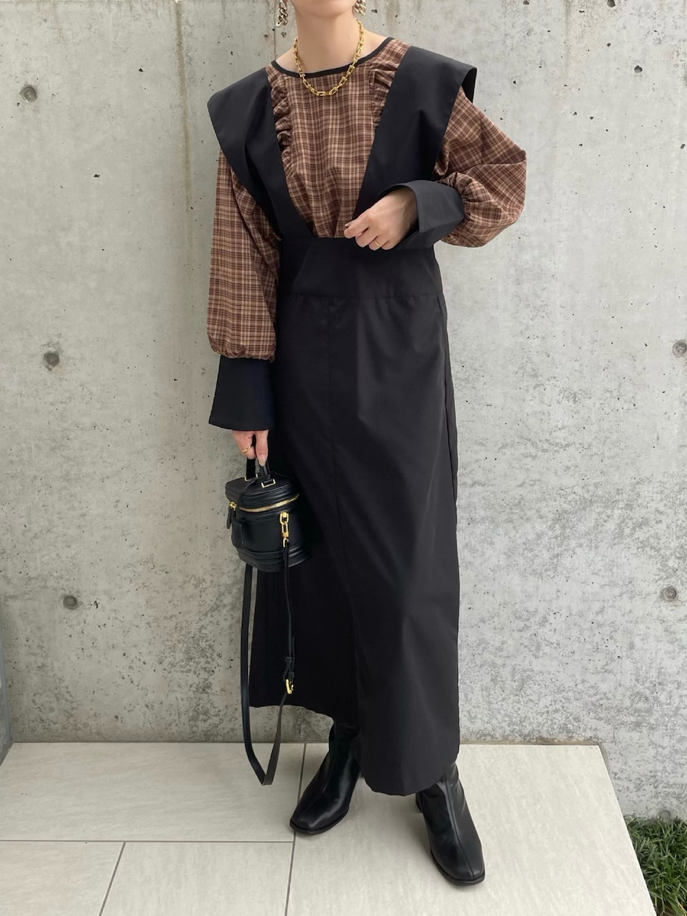 秋になると着たくなるチェック柄🍂 袖のボリューム感といい カフスのデザインも可愛すぎる🥰 ジャンスカは着回し💫