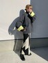 MISATO のノーカラーコート「バイカラーニットコート」を使ったコーディネート
