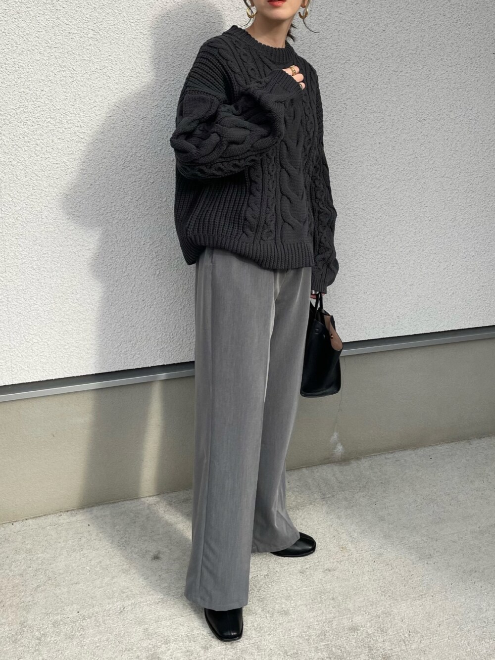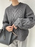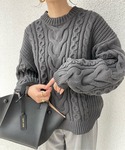 MISATO のニット/セーター「ケーブル編みクルーネックニットトップス」を使ったコーディネート