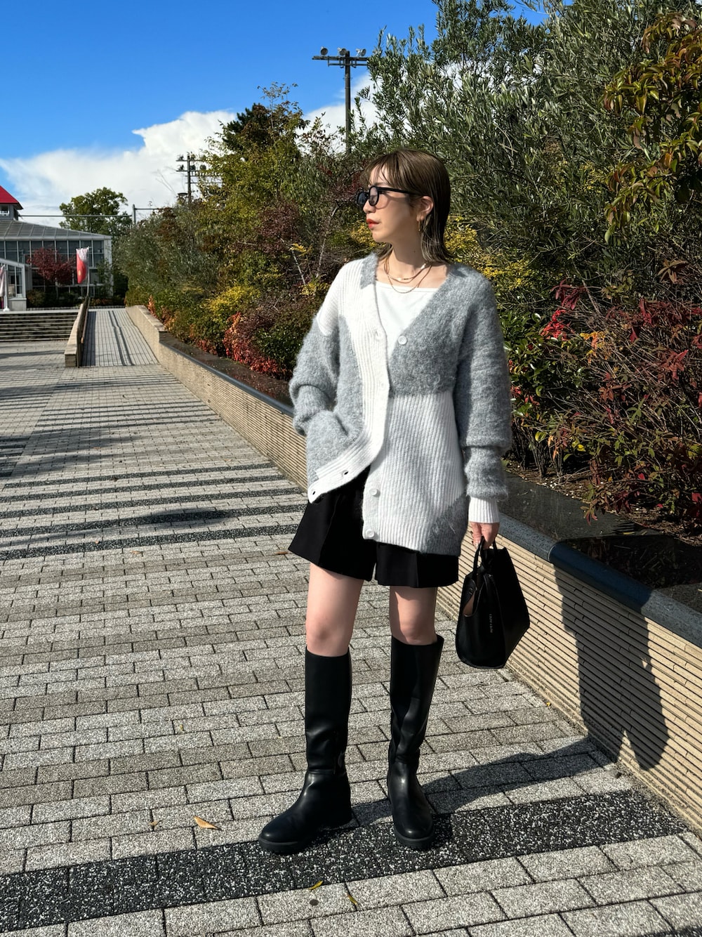 11/20(mon)~ 発売STARTのy/m by misato バイカラーニットの カーディガンバージョンです🩶 ヒップまで隠れる丈感で体型カバーにも◎ トレンドライクなショートパンツ合わせや キャミワンピの上から羽織ってもかわいいです🙆♀️ coming soon…♡♡