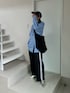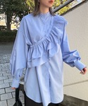 フリルSETのシャツを シンプルにバンドカラーシャツで💙