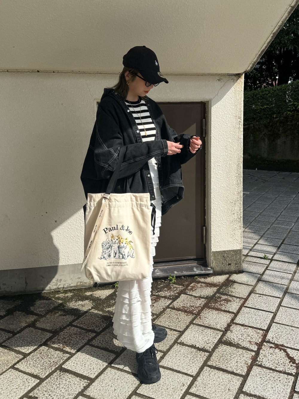 MISATO のトートバッグ「PAUL & JOE ACCESSOIRES (ポール&ジョーアクセソワ)キャンバス巾着トートバッグバッグ スリーキャッツ PJA-B1013」を使ったコーディネート