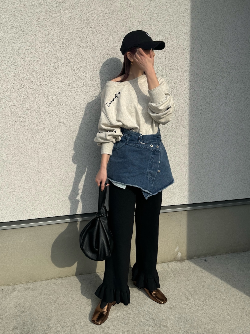ラフなスウェットコーデに デニムベルト巻いたら好きコーデに🫶