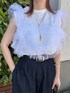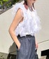 ふわふわのチュールドッキングトップス♡ チュールを肩に掛けてキャミ風に、 肩から落としてオフショル風に、 腕を抜いてビスチェ風にと、 3パターンの着回しが可能です✌🏻 5/20(mon)~発売START🤍 カットチュールドッキングノースリーブトップス ¥5,500(tax in) y/m by misato