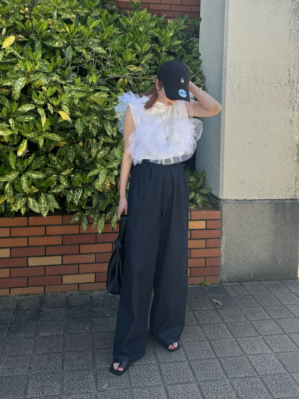 MISATO のデニムパンツ「デニムタックワイドパンツ」を使ったコーディネート