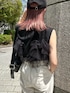 チュールがドッキングされた着映えトップス♡ 着回し抜群の3way仕様です♪ チュールを肩から落としてオフショル風に 着れば二の腕もカバー出来ます✌🏻 本日より発売STARTしました🖤