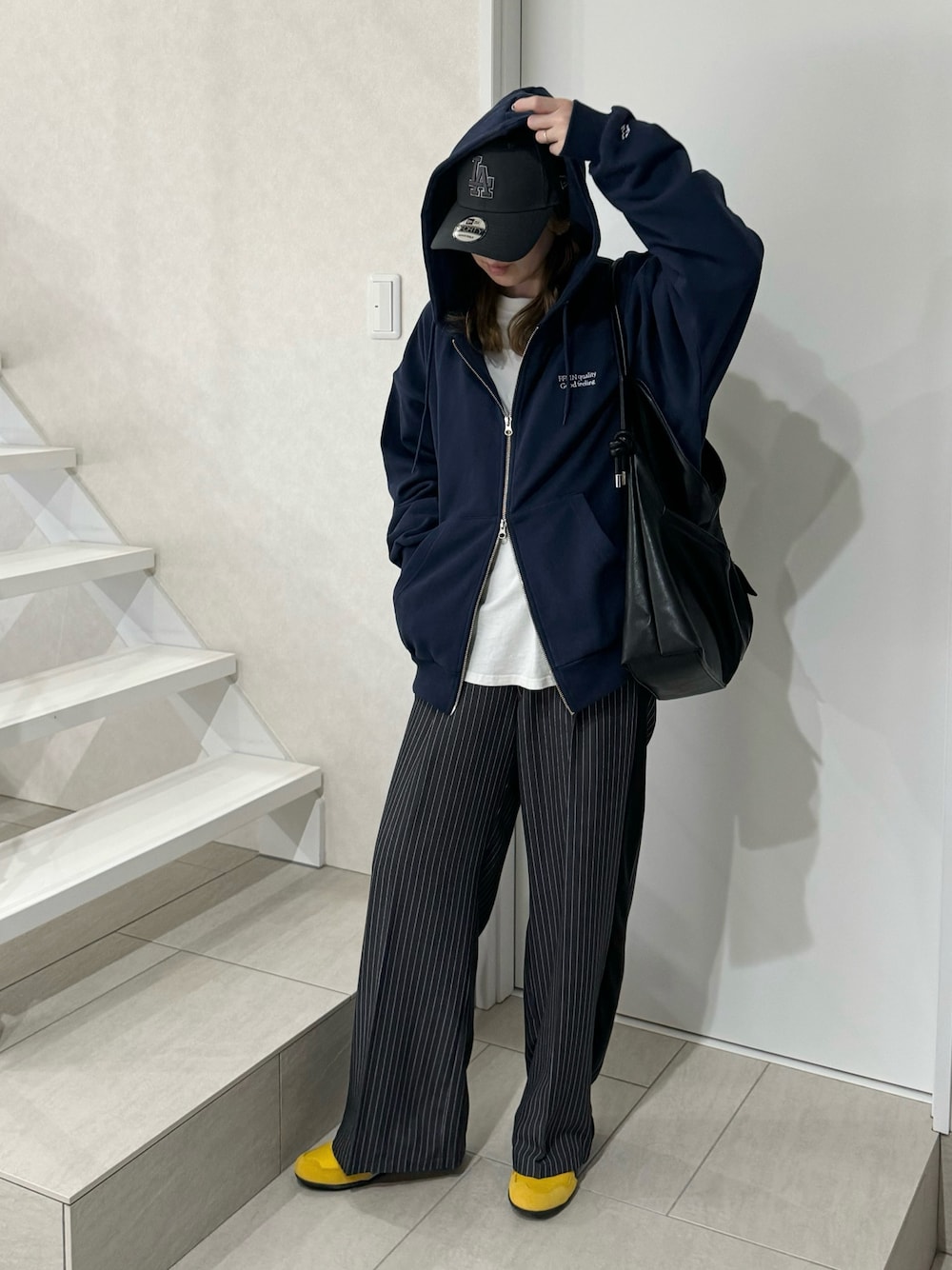 MISATO のパーカー「【FFEIN(フェイン)】ワンポイントロゴフーディジップパーカー / フード ダブルジップ 刺繍 ワンポイント ワイド 裏起毛」を使ったコーディネート