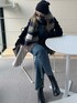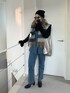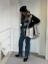 久しぶりにデニムビスチェのセットアップ💙 また寒くなるみたいだから マフラーぐるぐる巻いてあったかコーデ🧣