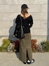 ゆるっとラフに🖤 ブラック×カーキで大人カジュアルにまとめてみた! キャップとスニーカーでちょいスポーティーな抜け感プラス◎
