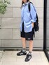 シンプルだけどしっかり主役になる、 FFEINのワンポイント刺繍ナイロンショートパンツ🖤 メンズライクなアイテムは、 シャツ合わせでちょっと大人っぽく。 足元はadidasでスポーティにまとめてみたよ🏃♀️✨ 暑い日も楽ちん&動きやすいコーデ、お気に入り!