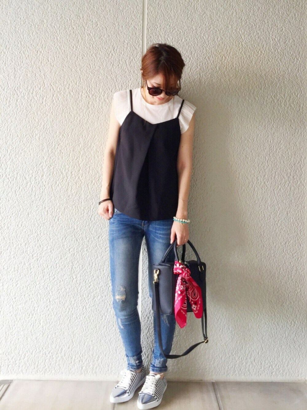 MISATO のTシャツ/カットソー「サイドプリーツボックスシルエットトップス」を使ったコーディネート