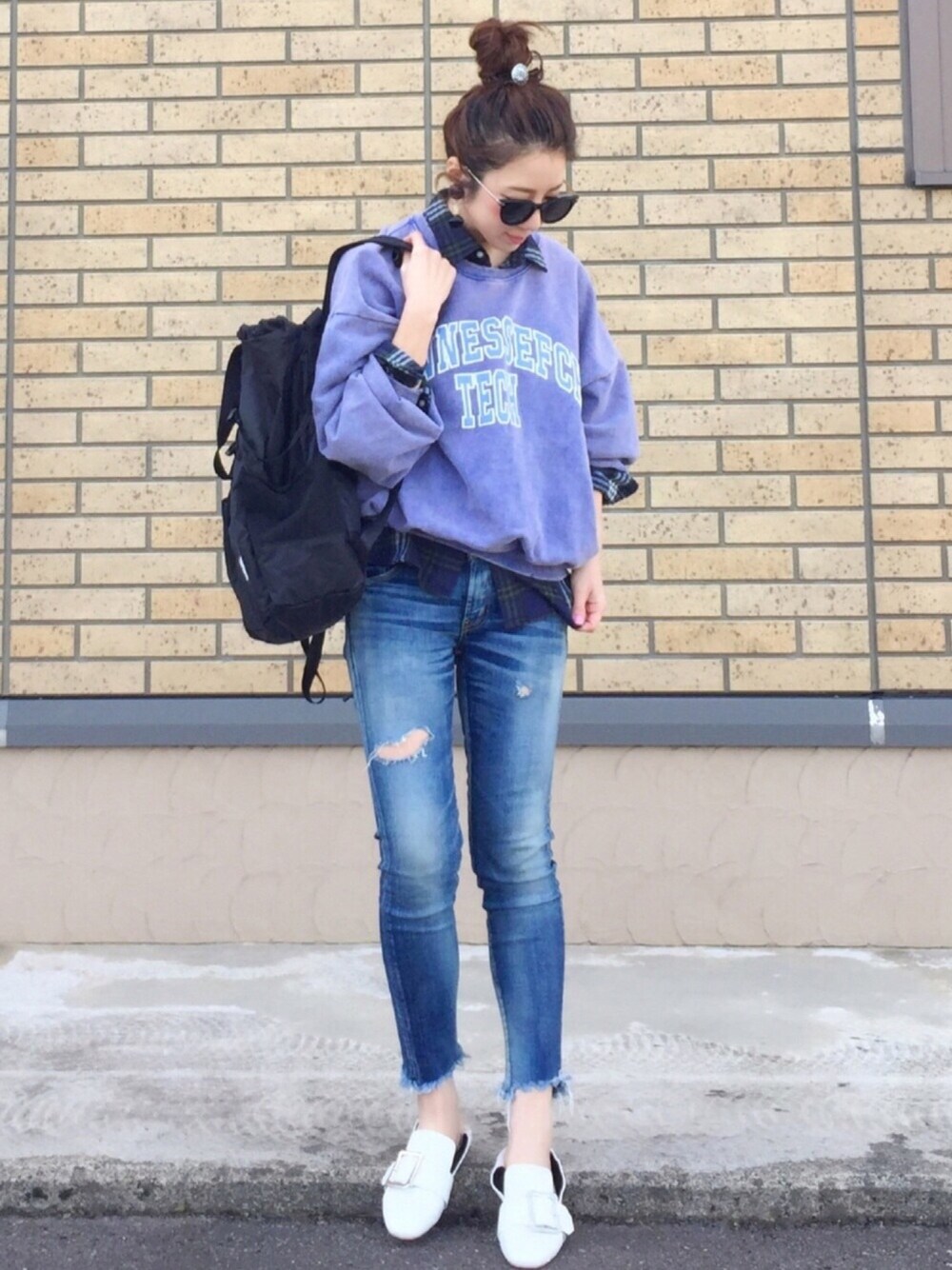 ヴィンテージ風な色褪せたスウェット ダメージ加工もとってもいい味出してて、超タイプでした🤤💘 今季、気になってるブルーをチョイス❗️ ポイントに白シューズを、、、👟✨✨ どちらもkormarchさんより頂きました♡