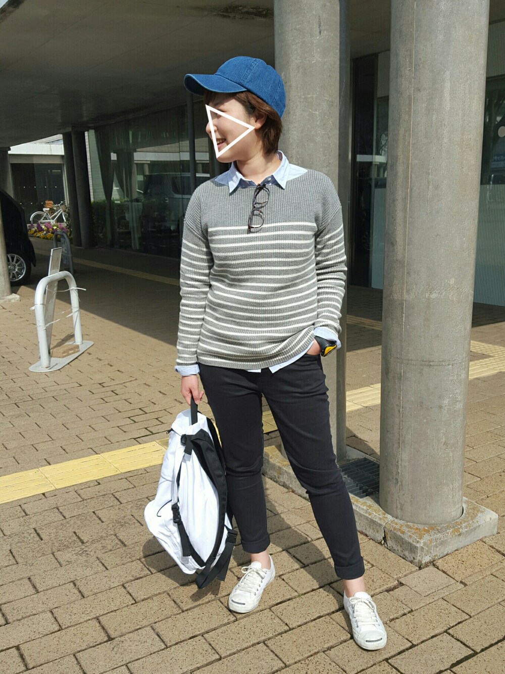 青いシャツがどうしても着たかったので グレーのニットと合わせました🙋 GAPのニットです!とってもしっかりしてます👽 ずっと欲しかった白いリュックも 今日届いたので早速使いました👿