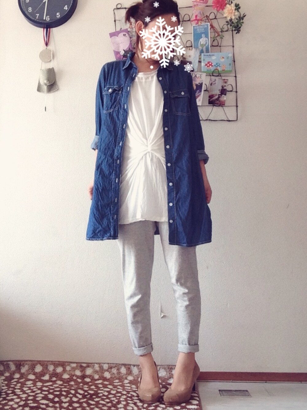 シャツワンピ 500円 リサイクル店 ロングタンク 500円 GU スウェットパンツ 1990円 UNIQLO もっとパンプス欲しいな。